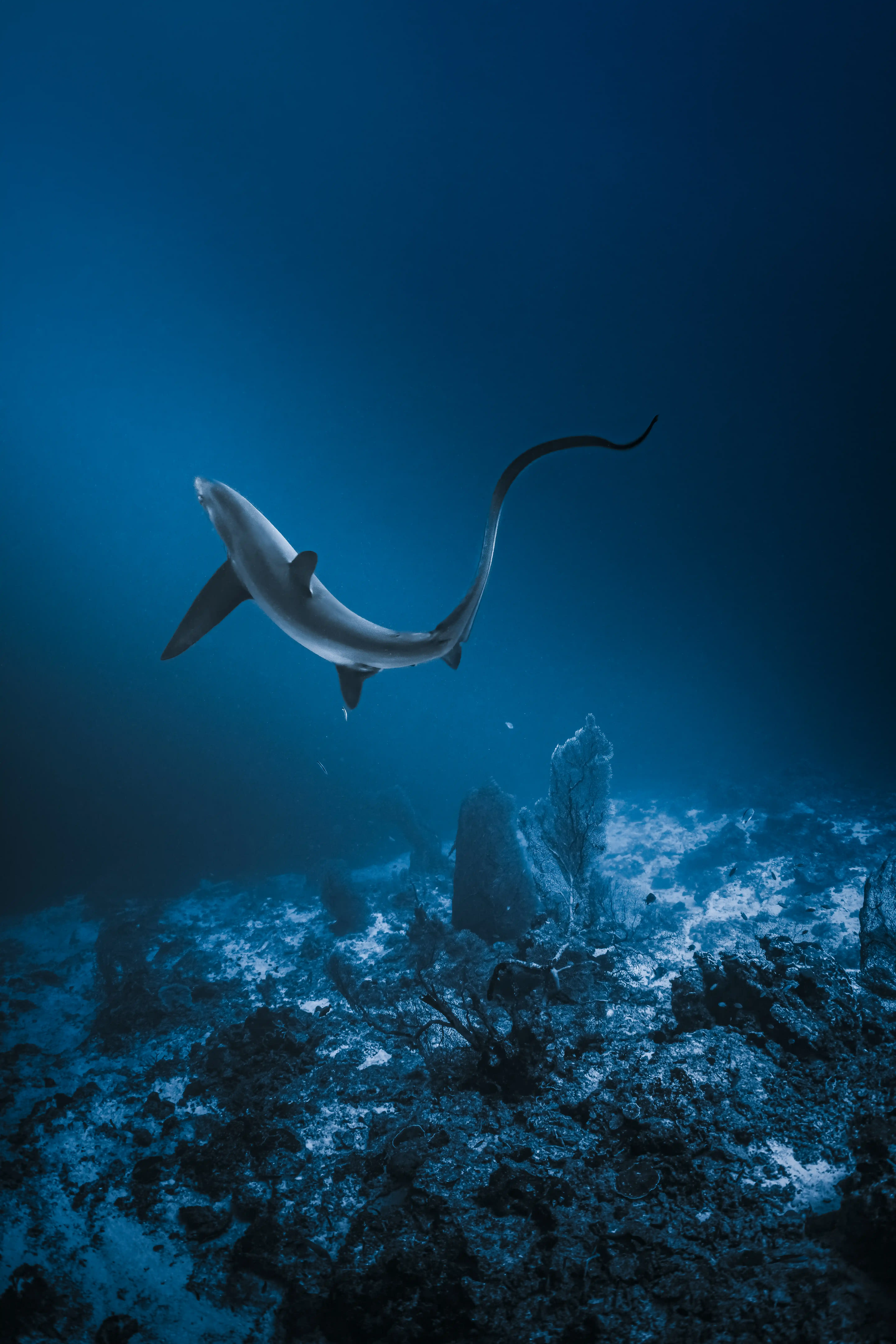 The "Pelagic Thresher" (Alopias pelagicus) found here is distinct. They are larger, bolder, and often seen in conjunction with other pelagic species like Hammerheads and Silvertips, making every drift dive a multi-species safari.
